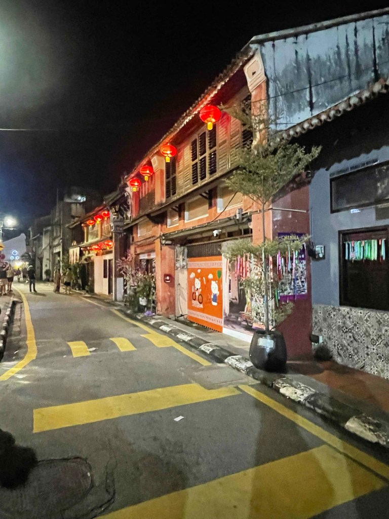Was that it for today? Of course not. We dressed up and went on a sightseeing tour of Georgetown. The contrasts couldn’t be sharper: glittering luxury hotels and malls by the water — and run-down Victorian houses in the old town with morbid charm. At Armenian Road, we got out and strolled along the street, which is probably bustling during the day. Now we know what’s on the list for tomorrow.