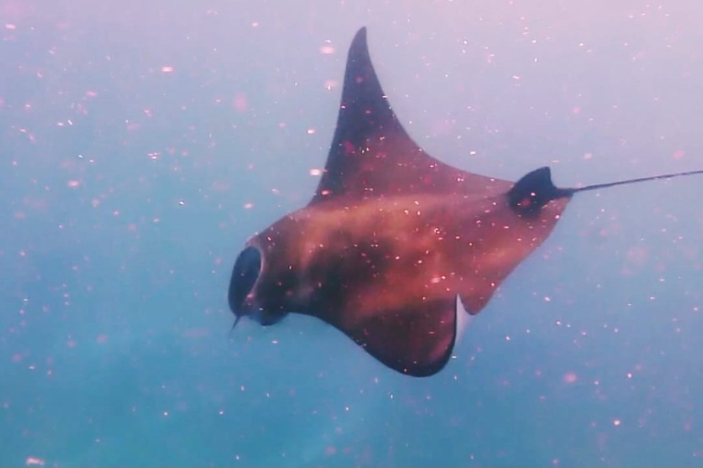 The excursion began with snorkeling in Manta Bay. Maybe we’d see the giant manta rays, maybe not. It felt a bit like dolphin or whale watching: a lot of money for a “maybe.” We had a private boat, but of course we weren’t alone. A swarm of noisy boats and hordes of snorkelers were hunting for the mantas. I felt a bit guilty – those poor animals. As if they were waiting just for us. But then one appeared. We jumped into the water, and there it was – right in front of me. It looked straight at me, opened its mouth, and glided away. The masses went after it like crazy. Twice more I got to see one, but I was too slow for the GoPro. And all the while I kept getting arms and legs in my ribs. Survival of the fittest in the water – all for the photo.