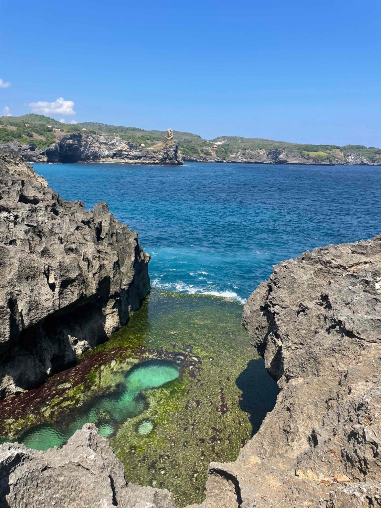 Am letzten Urlaubstag unternahmen wir einen Ausflug nach Nusa Penida, eine Insel zwischen Bali und Lombok. Ganz früh am Morgen holte uns Komat, unser Reiseführer, ab. Mit dem Taxi fuhren wir zum Hafen, von dort ging es mit den Einheimischen im Schnellboot nach Nusa Penida. Auf der Insel wartete bereits das nächste Taxi, das uns den ganzen Tag zur Verfügung stand.