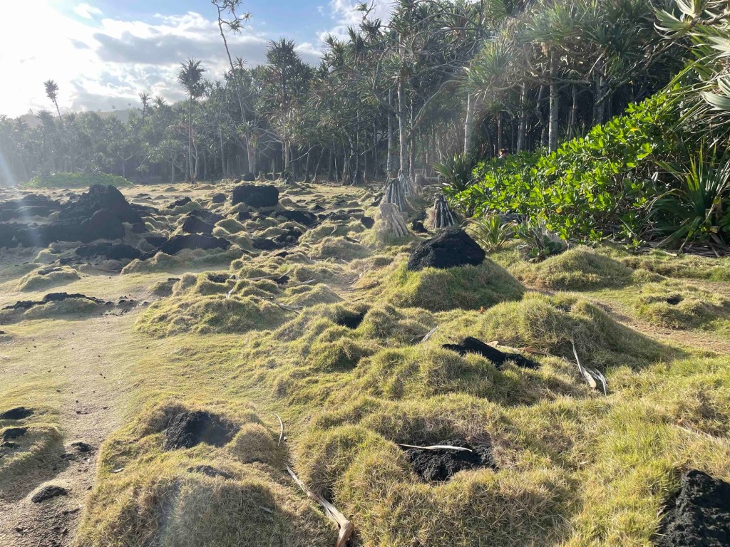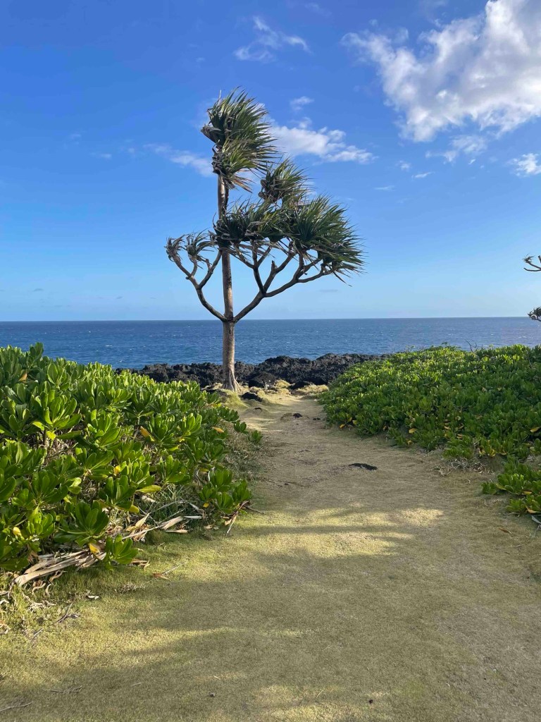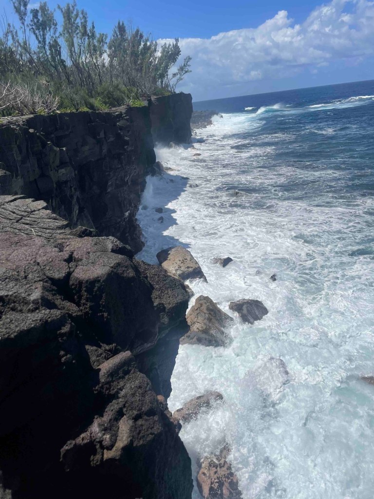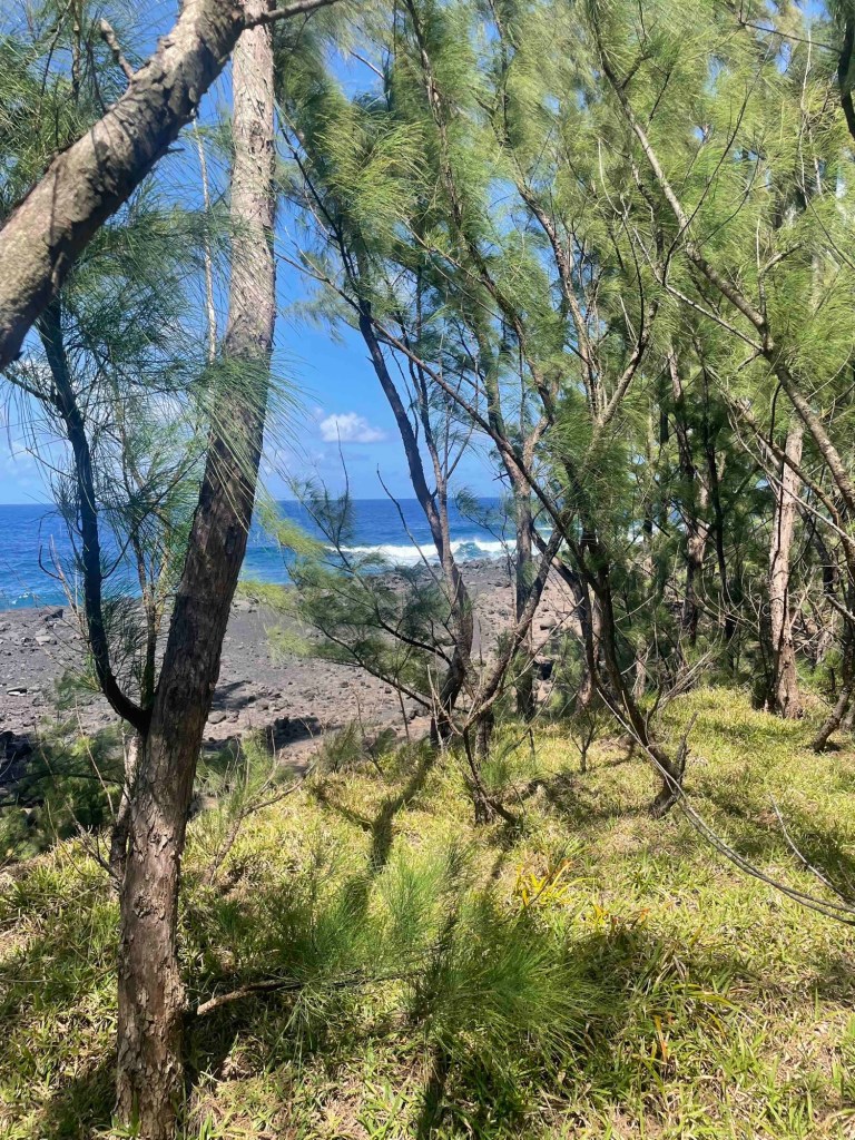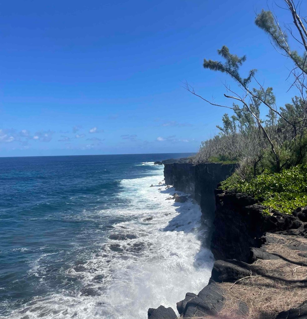 But the coastal path made up for it: filao and vacoa trees, lush greenery, black basalt, and deep-blue sea — what more could one want?