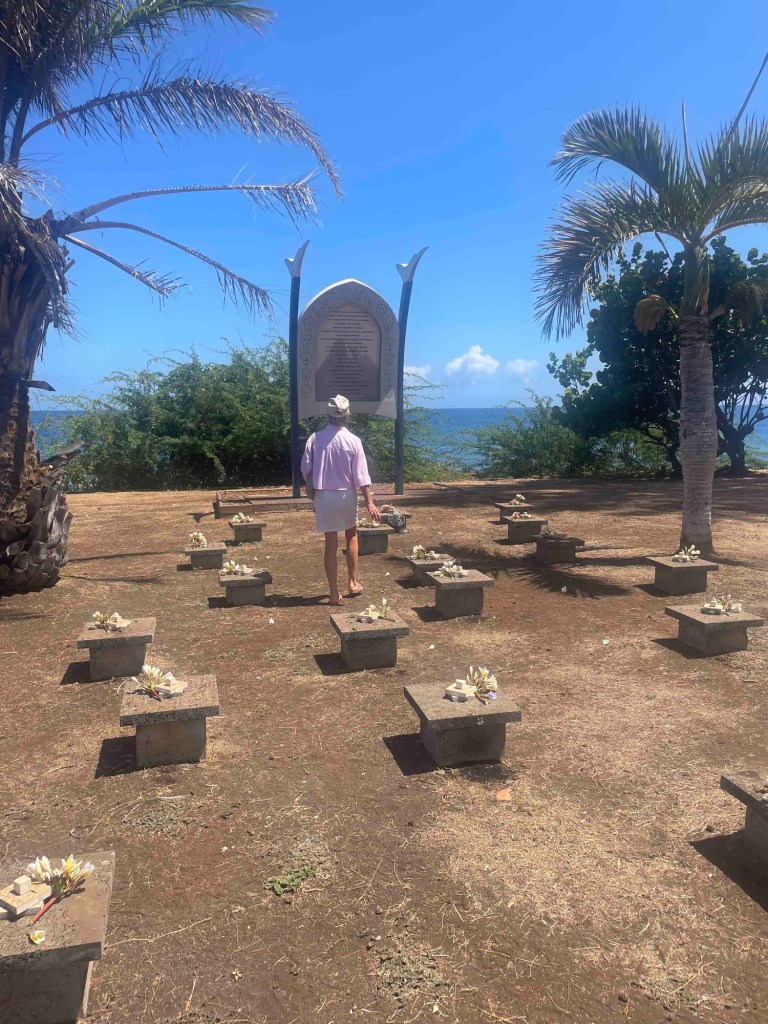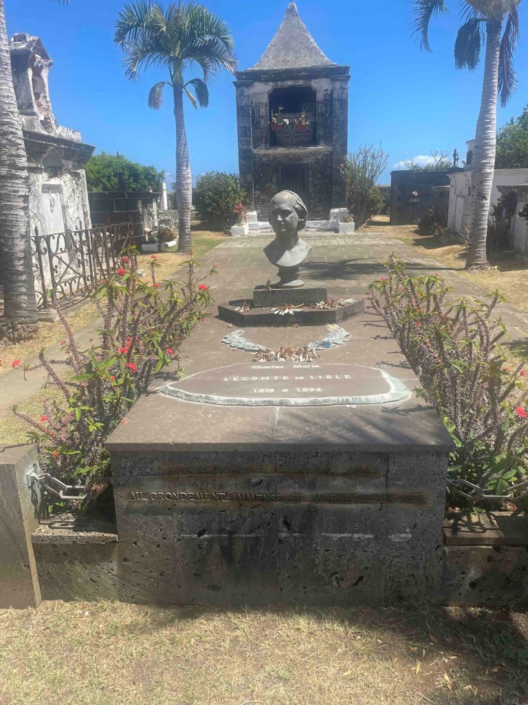 Wir starten also mit dem Friedhof, auf dem der Dichter Leconte de Lisle seine letzte Ruhestätte gefunden hat. Eines seiner Gedichte (Les Éléphants) mussten wir während unseres Französischstudiums analysieren – das Aushängeschild der Stadt. Da ich den Friedhof schon kannte, mussten wir nicht lange suchen. Nur das Grab des Piraten La Buse blieb auch diesmal unauffindbar. Kein Name weist darauf hin. Duftende Frangipanibäume betören unsere Sinne.
