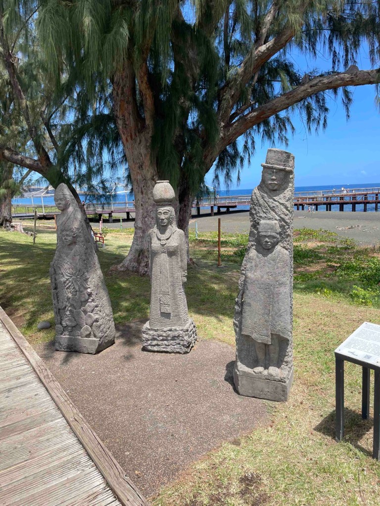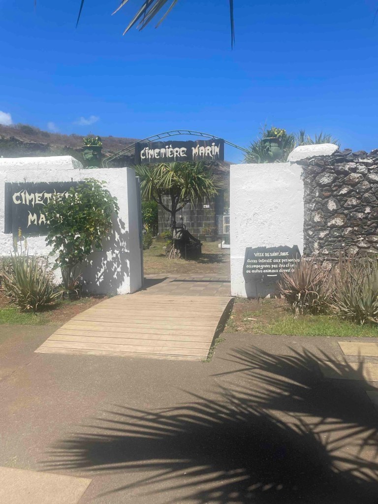 So we begin with the cemetery, where the poet Leconte de Lisle found his final resting place. We had to analyze one of his poems (Les Éléphants) during our French studies – he’s the town’s literary figurehead. Since I already knew the cemetery, we didn’t have to search for long. Only the grave of the pirate La Buse remained elusive again this time. No name marks it. The scent of frangipani trees fills the air, intoxicating our senses.
