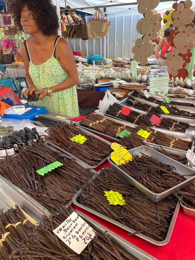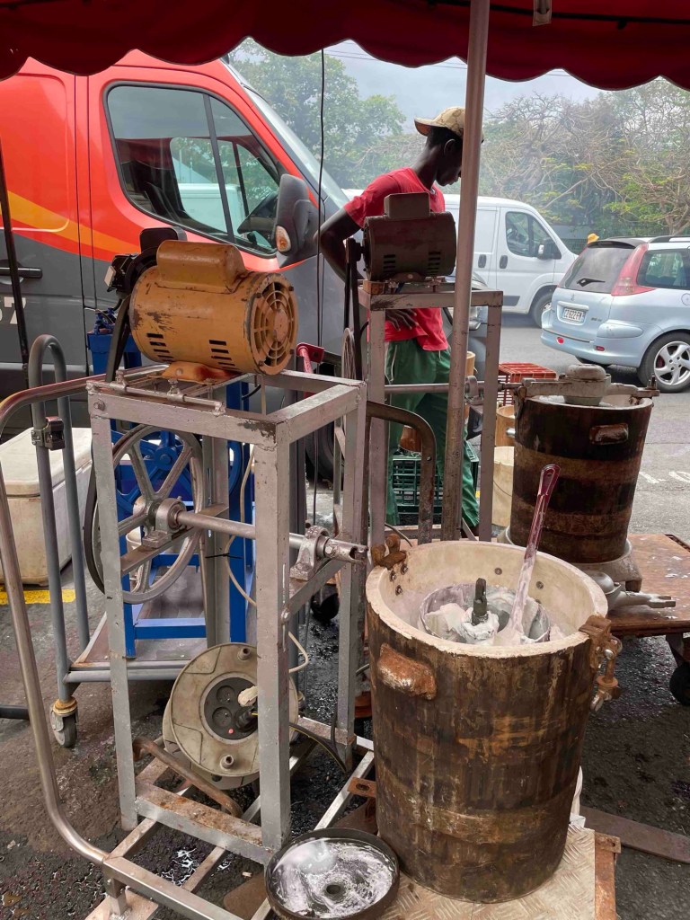 We’re intoxicated by the scents of vanilla, turmeric, and pepper. At one stand, a man is making coconut sorbet with an almost medieval-looking ice machine. We join the queue – and the wait is absolutely worth it!