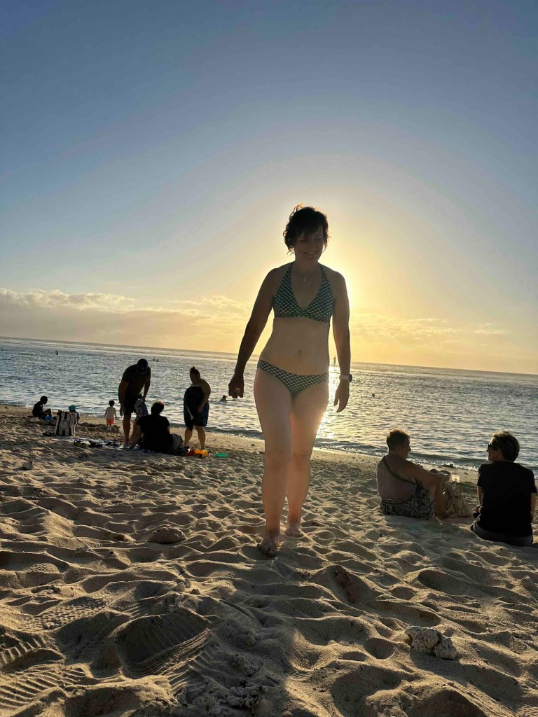 And what’s next on the schedule? Of course – the beach! The sweat and sticky mosquito spray need to be washed off. Right on time for the golden hour, we’re sitting at L’Hermitage, in my new bikini (Oops, where does this thing come from all of a sudden?!), with a bottle of Dodo beer in hand. The water feels wonderful. Only the sunset isn’t quite as spectacular this time – a heavy cloud lingers over the mountain. We pack up, make a quick escape, and get back – still dry.