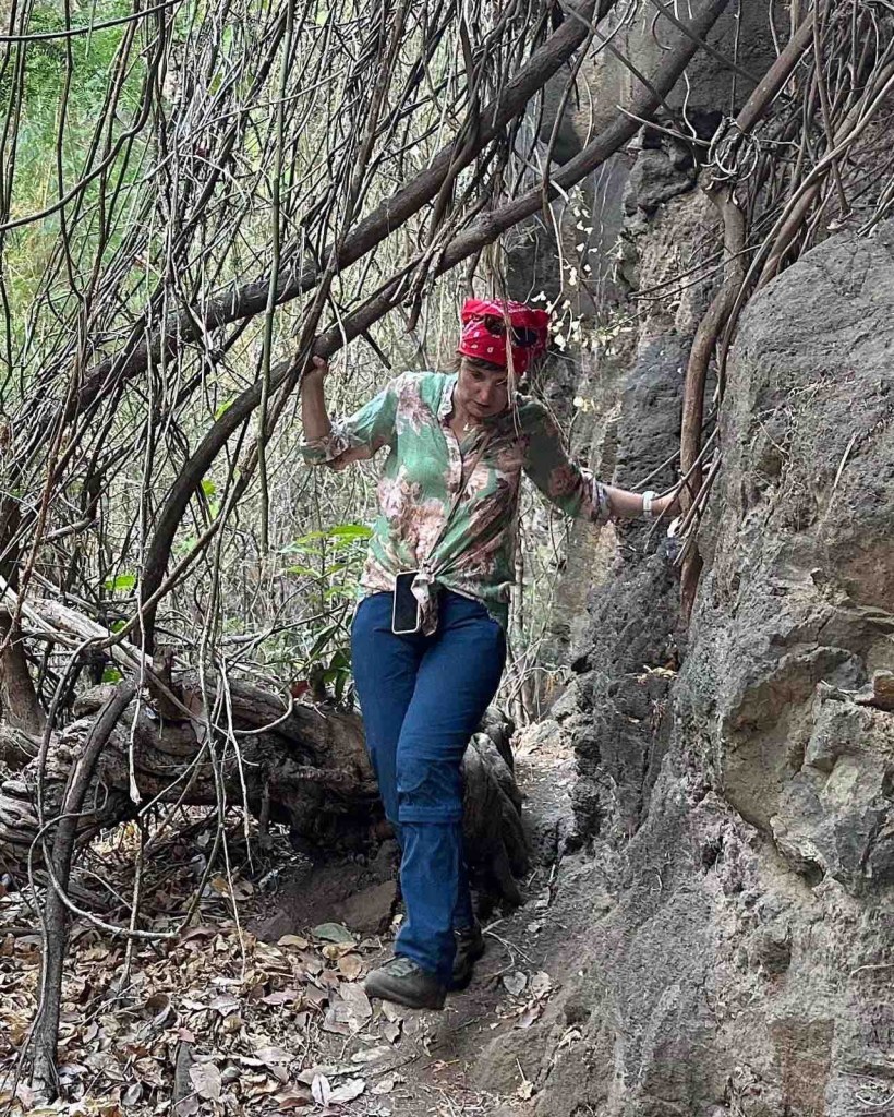 Before heading into the ravine, we put on our “battle gear” and spray ourselves generously with Nobite – mosquito repellent from head to toe. The grass isn’t waist-high yet, but even a bit of standing water is enough to attract the pests. The path still runs dangerously along the slope, past rocky outcrops draped with hanging lianas, over roots and fallen trees. At the end, we’re rewarded with a view of the waterfall deep in the gorge – a true Garden of Eden that makes you feel so small.