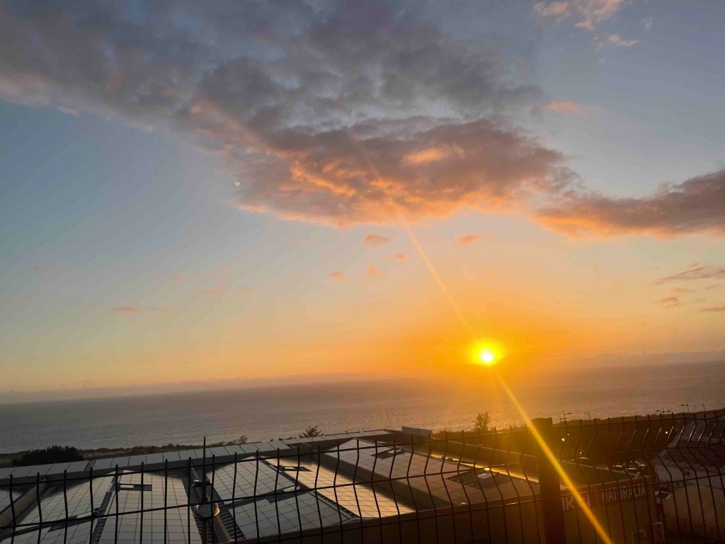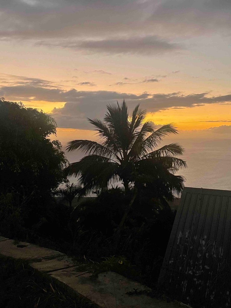 On the way back, we stop at the Centre Commercial Portail in Saint-Leu. Why mention that? Because it’s a supermarket with a view — a wonderful panorama of the ocean. From up there, we witness today’s Golden Hour. And Andrea finally finds her dress — at a little clothing stand right in front of Leclerc.