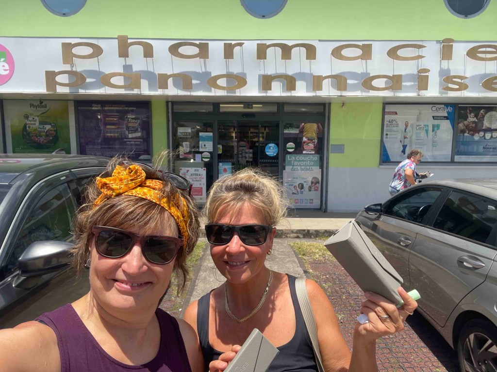 The next funny episode happens at a pharmacie. We’re holding up traffic. Everyone in the shop seems to be focused on the two Germans – somehow we’re entertaining the whole place. Andrea only wanted to buy a medicine, and we both walk out with new sunglasses. We even get 50% off the second pair.