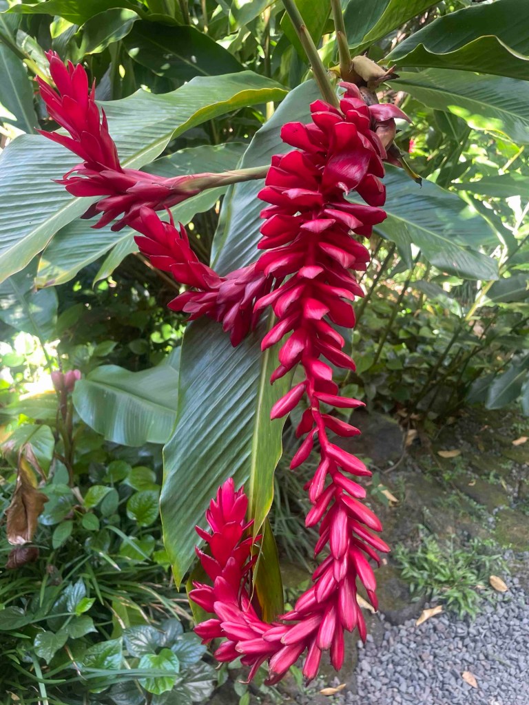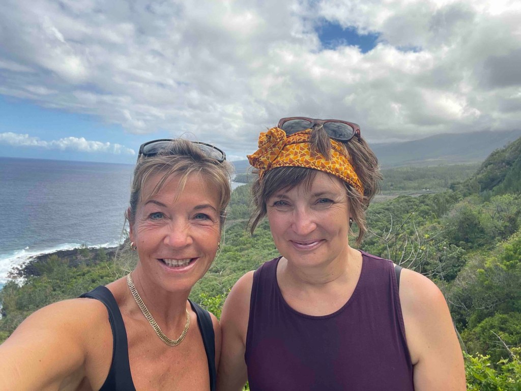 Andrea drives our little girl car; I navigate us to different spots along the east coast. Tractors and trucks loaded with sugarcane come toward us or chug slowly in front of us. The whole eastern region is agricultural: lots of plantations – bananas, lychees, mangos, sugarcane everywhere. Lush shades of green, and in the background the Cirque de Salazie. We can’t get enough of it.