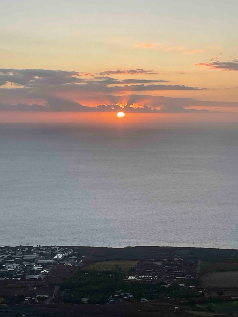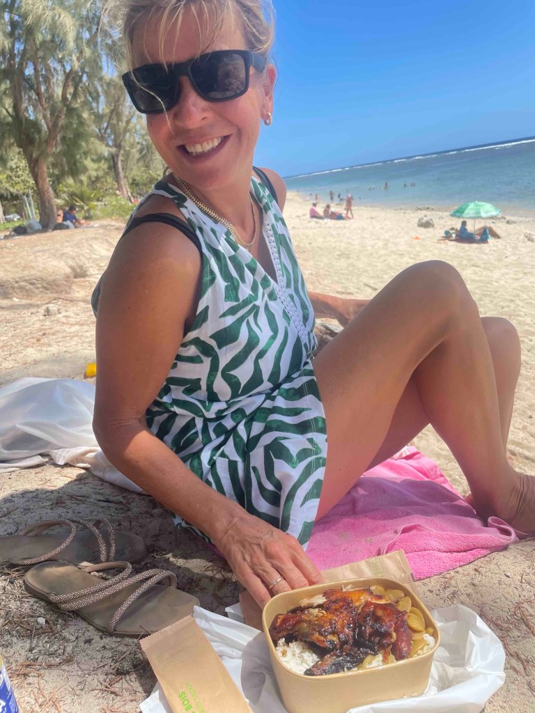 Ich konnte mich gestern nicht dazu durchringen, meinen Blog über den allerletzten Tag zu schreiben. Ich wollte die letzten Stunden genießen und alles noch einmal in mich aufsaugen: den Himmel, das Meer, die Wolken, die sich wieder an den Bergen festbissen, das Zwitschern der Vögel und das Gurren der Tourterelle, den Sonnenuntergang und einen letzten Abend am Pizzastand – bei der wohl leckersten Pizza der Welt und einem Dodo-Bier auf dem Friedhofsvorplatz von Les Colimaçons.